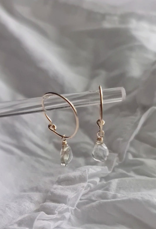 Green Amethyst Hoops - Gold-filled hypoallergenic wire