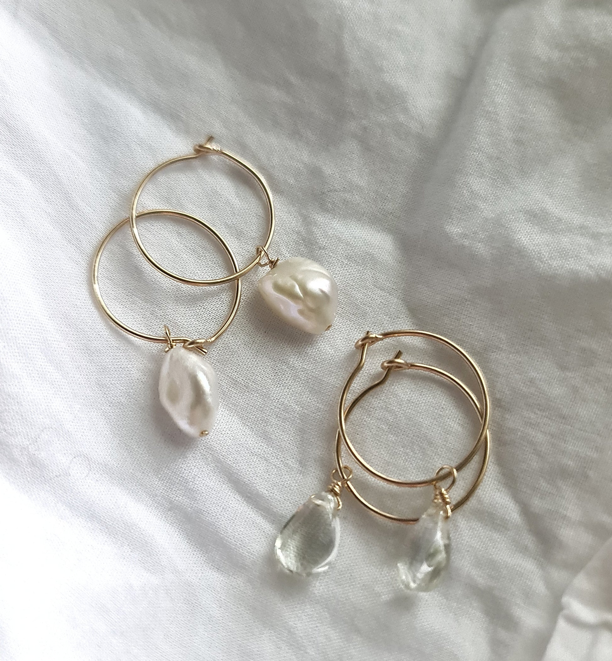 Green Amethyst Hoops - Gold-filled hypoallergenic wire